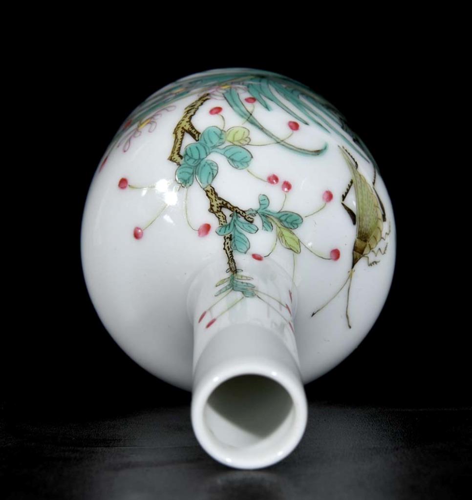 Description - Chinese porcelain vase, decorated with orchid, Qianlong mark on side.
