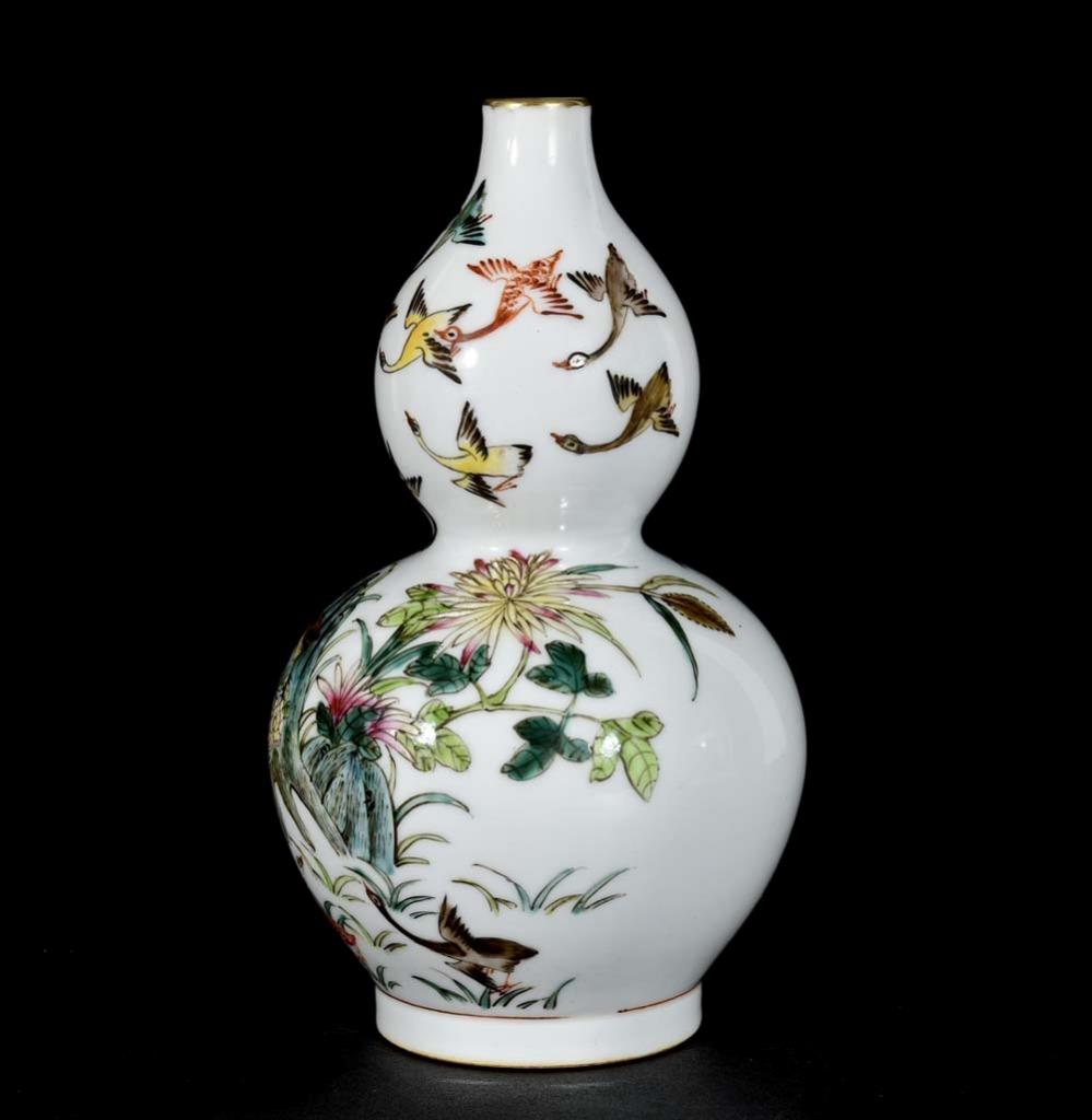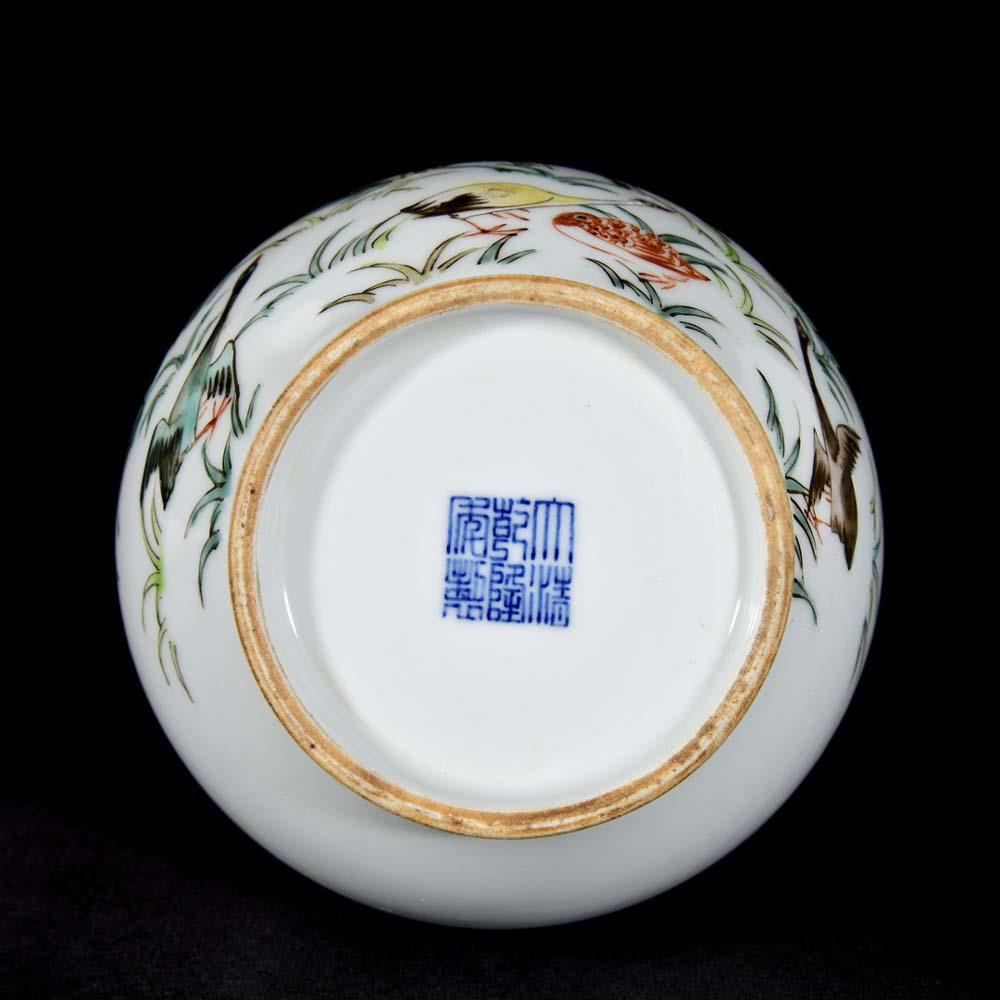 Description - Chinese porcelain vase, decorated with bird, Qianlong mark on side.
