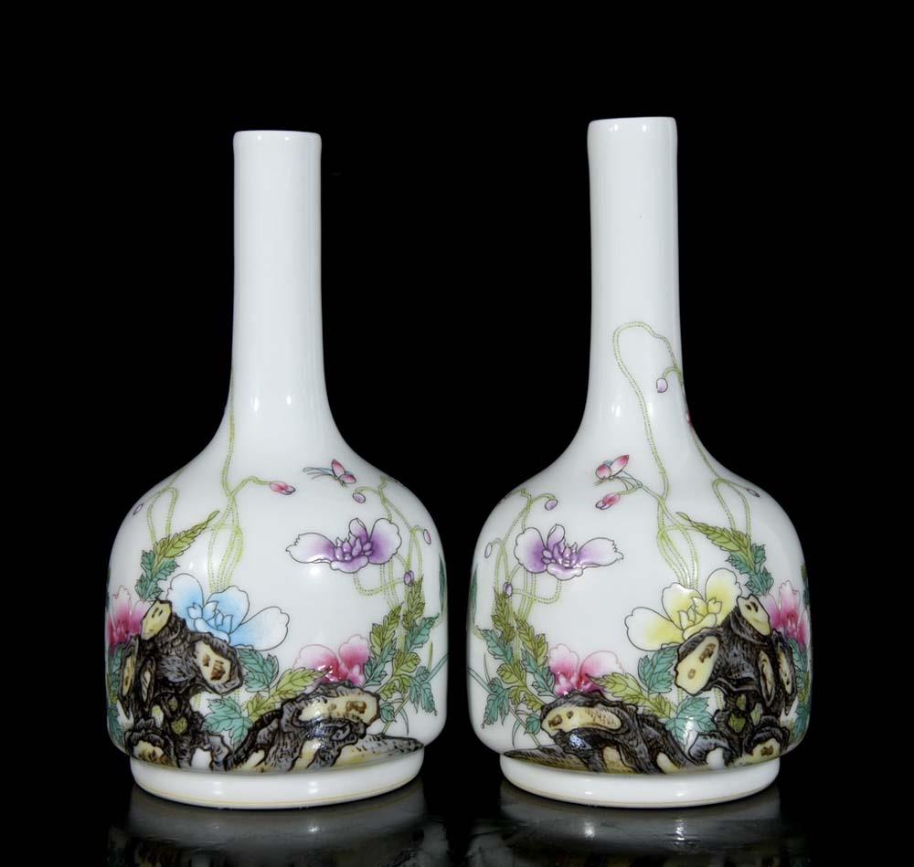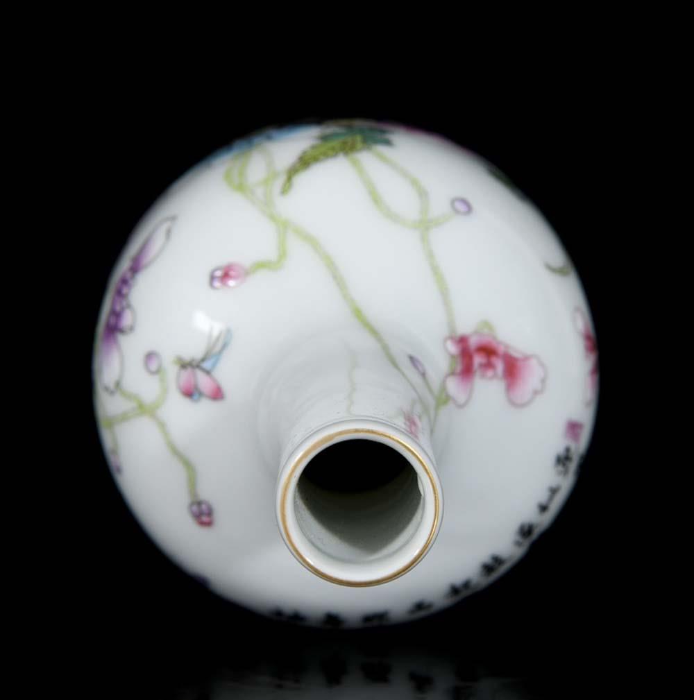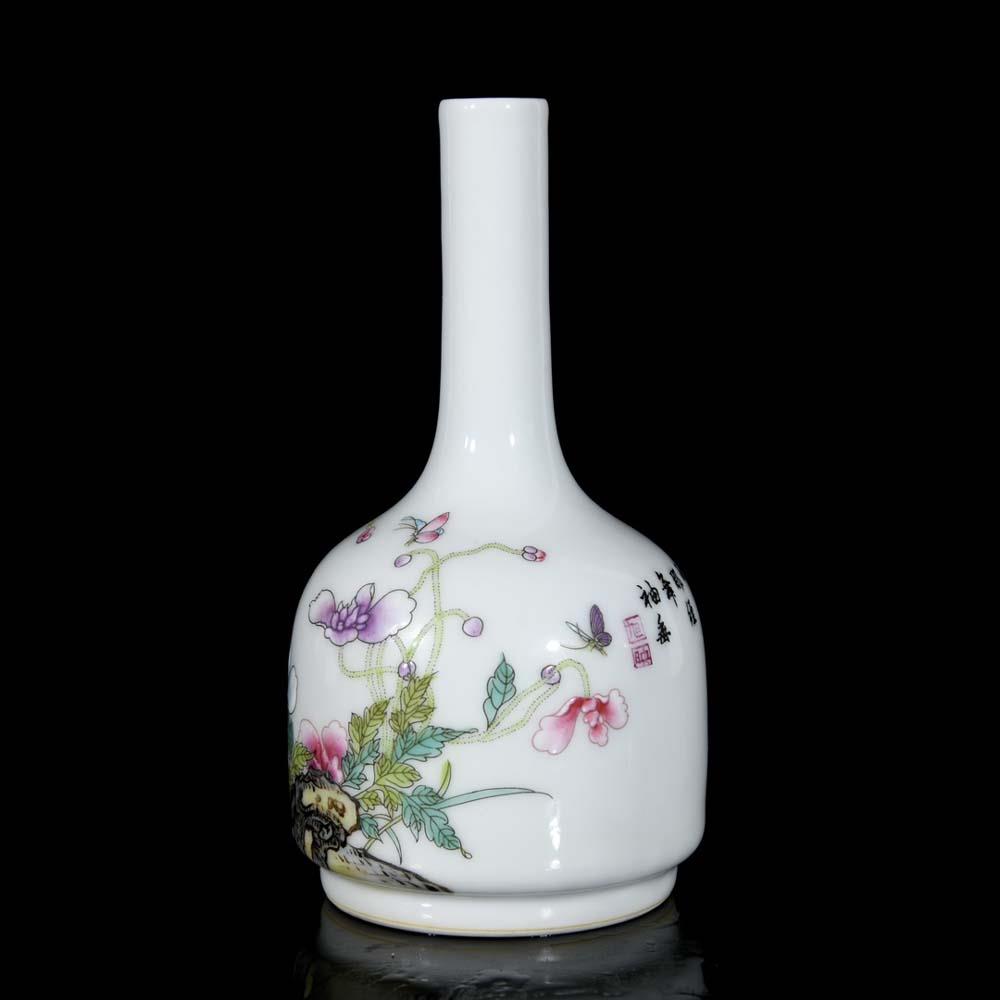 Description - Chinese porcelain vase, decorated with flower, Qianlong mark on side.